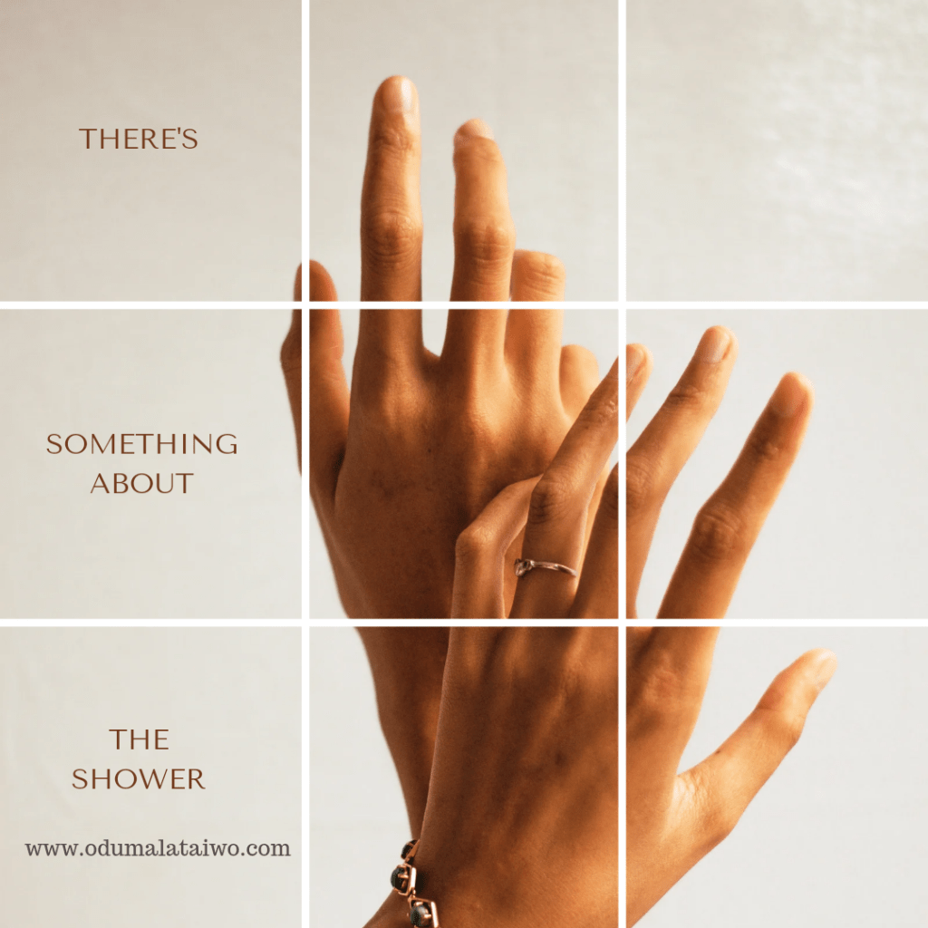The shower is for brevity – it’s not the place you escape the world and get lost in make-believe. It is the place of meeting with your self. It is where you stand droplet to droplet with your vulnerabilities, your mind, your thoughts – unable to run. So you let the pour of the showerhead drown your thoughts. It invites you to cry, to laugh, to sing, to steer your mind from storms into calmness, to bare your emotions.